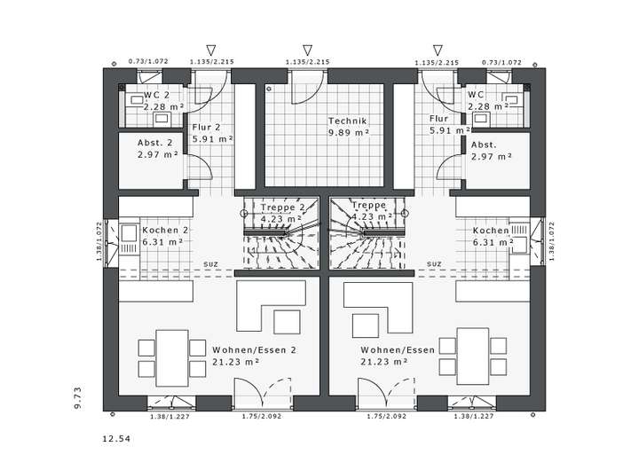 -Heizungstechnik frei wählbar, z. B. mit Fußbodenheizung + Kühlfunktion