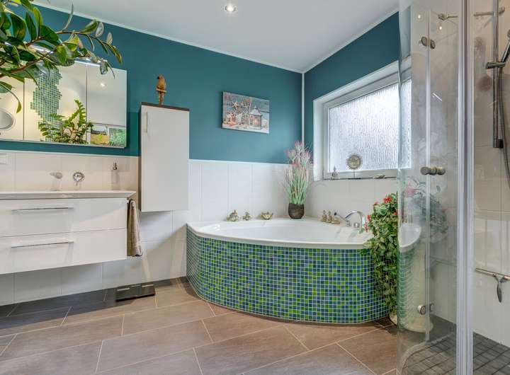 - Tageslichtbad mit Eck-Badewanne und Dusche
