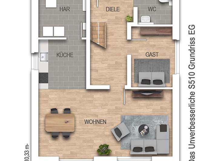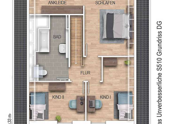 Das Unverbesserliche S510 ist der Klassiker unter den Einfamilienhäusern. Auf 120 m² findet die ganze Familie ihren Platz. Neben dem großen Wohn- und Essbereich bietet das Erdgeschoss ebenso Raum für Besuch im eigens dafür vorgesehenem Gästezimmer. Im Dachgeschoss darf man sich über ein geräumiges Schlafzimmer inklusive Ankleide freuen und auch das Familienbad ist großzügig geplant.