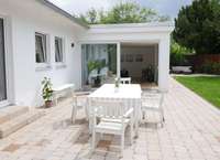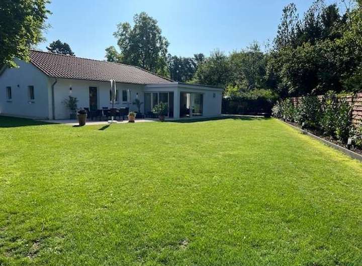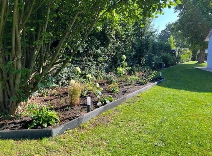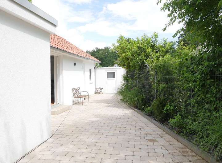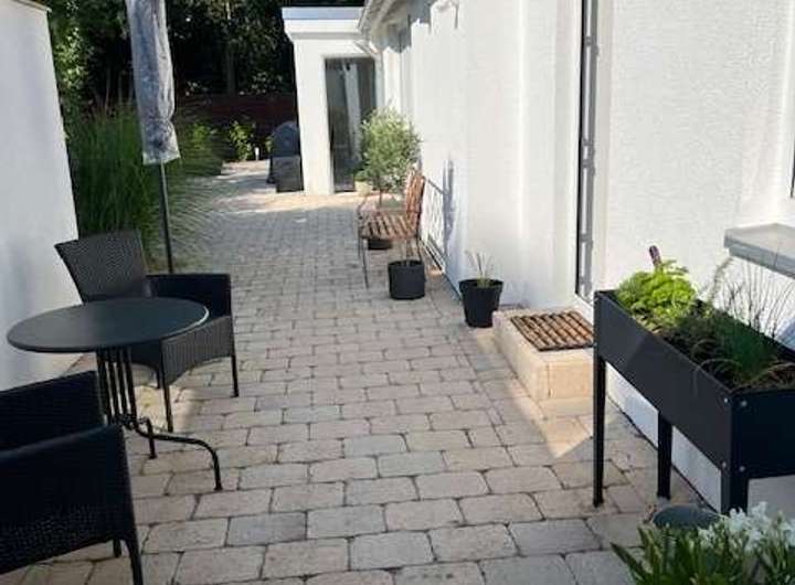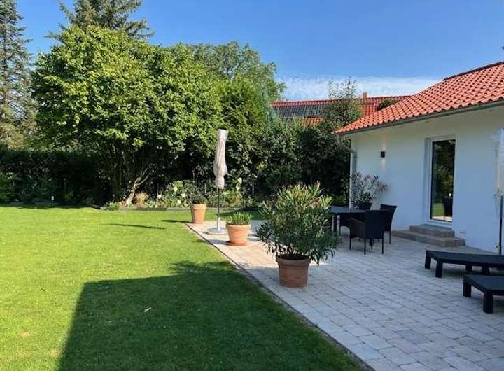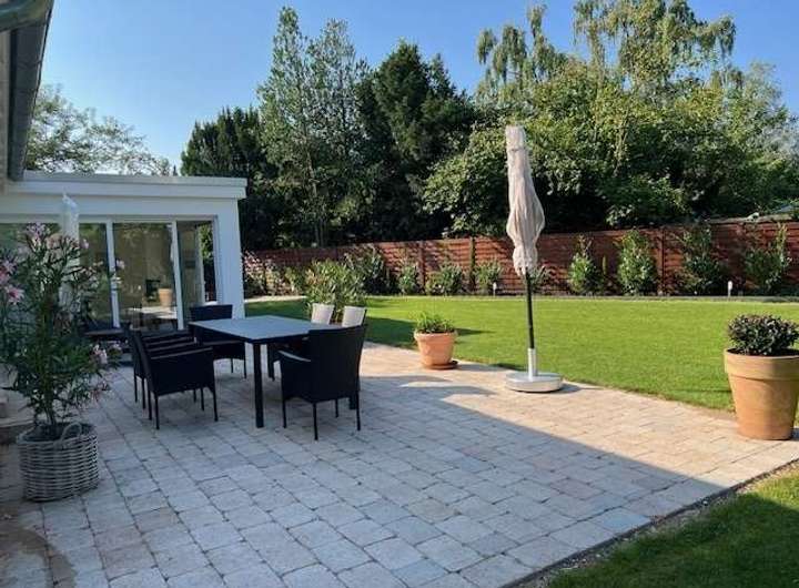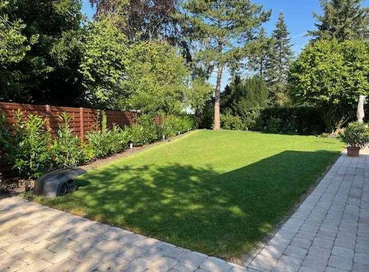Besonders hervorzuheben sind die zwei Terrassen und der wunderschöne Garten mit altem Baumbestand und Büschen. Ein Rasen -und Saugroboter erleichtern die mühelose Pflege des Anwesens.