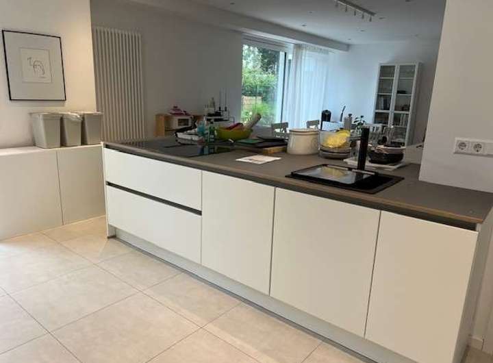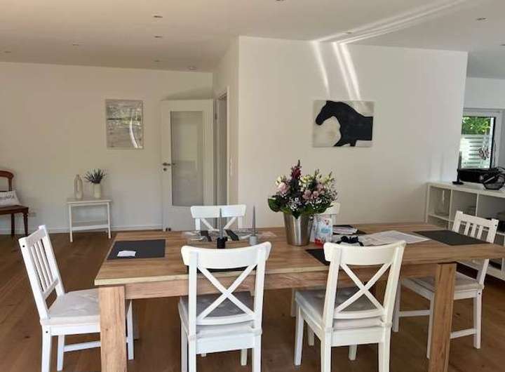 Die Küche ist durch Unterschränke vom Esszimmer getrennt. Die Einbauküche ist mit einem Herd, Kühl-Gefrierschrank, Mikrowelle, Geschirrspülmaschine, Backofen ausgestattet. Alle notwendigen Küchenutensilien werden zur Verfügung gestellt.