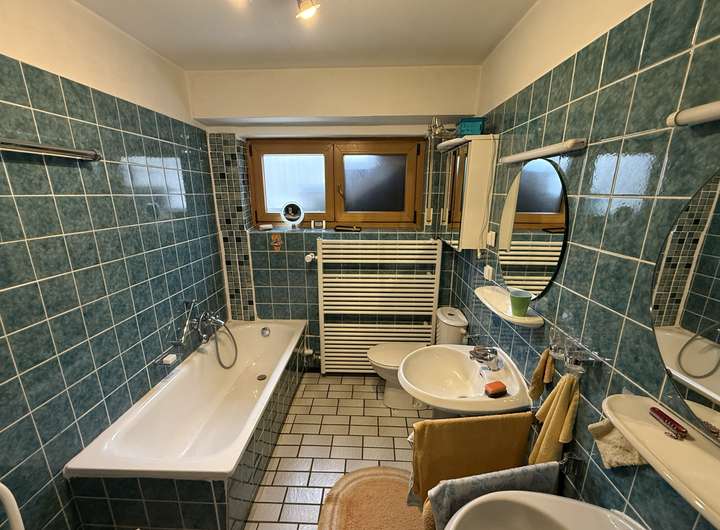 Ein Tageslichtbad mit Badewanne sorgt für zusätzlichen Komfort, ergänzt durch ein zweites Duschbad, das den Wohnkomfort dieser Ebene perfekt abrundet.