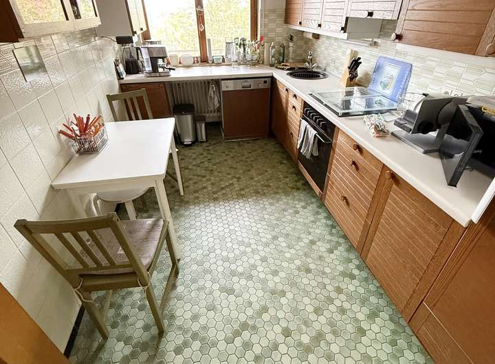Die separate Küche bietet ausreichend Platz für eine moderne Einbauküche.