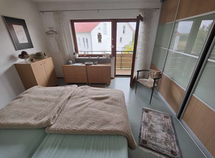 Das Schlafzimmer im Erdgeschoss eignet sich ideal als Elternschlafzimmer oder Gästebereich und ermöglicht ebenerdiges Wohnen.