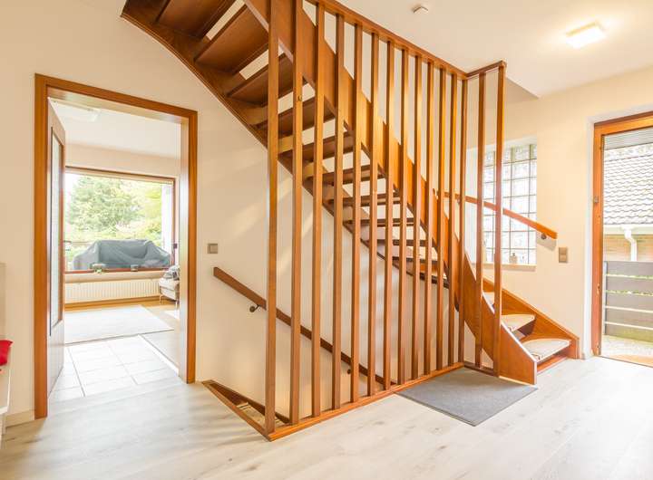 Das Einfamilienhaus liegt in einer verkehrsberuhigten Wohnstraße in gefragter Lage von Poppenbüttel. Die nähere Umgebung ist durch viel Grün und eine gute Infrastruktur geprägt. Am ca. 2 km entfernten Poppenbütteler Markt mit seinen diversen Einzelhandelsgeschäften, Ärzten und Apotheken finden Sie alles, was Sie brauchen. Jeden Freitag findet hier zudem ein Wochenmarkt statt. Das beliebte Alstertal-Einkaufszentrum erreichen Sie in ca. 5 Min. mit dem Auto oder mit dem Bus der Linie 24 und 174, welcher Anschluss an die S-Bahn Poppenbüttel hat und somit für Mobilität auch ohne Auto sorgt. Das Alstertal, das Naturschutzgebiet Raakmoor und die umliegenden Sportvereine bieten viele Möglichkeiten der Freizeitgestaltung und Entspannung.