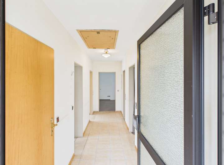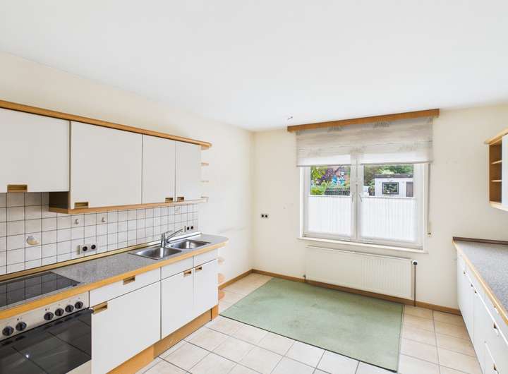 Beim Betreten des Hauses gelangen Sie in einen einladenden Flur, der Zugang zu allen wichtigen Räumen bietet. Die Küche ist funktional gestaltet und bietet ausreichend Platz für gemeinsame Kochabende. Das angrenzende Wohnzimmer ist hell und geräumig, mit direktem Zugang zum Garten, der viel Platz für Freizeitaktivitäten im Freien bietet.