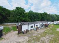 Der Außenbereich ist weitläufig und bietet ausreichend Platz für Erweiterungen oder zusätzliche Lagermöglichkeiten. Die Umgebung ist von viel Grün umgeben, was dem Gelände eine angenehme Atmosphäre verleiht.