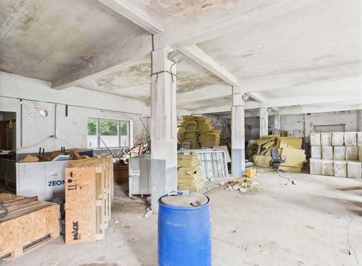 Das Gelände umfasst eine Halle, die sich ideal für Lagerzwecke eignet. Die Hauptnutzfläche beträgt 401,8 m². Die Halle ist geräumig und bietet flexible Nutzungsmöglichkeiten, die sich an verschiedene Gewerbezwecke anpassen lassen.