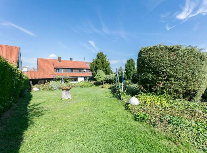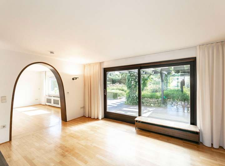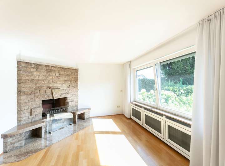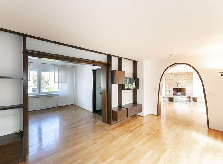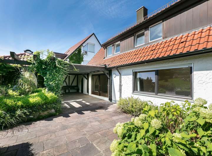 Die Räume des Hauses sind großzügig geschnitten, lichtdurchflutet und gut durchdacht. Die Einrichtung ist zwar älter, wurde aber stets gepflegt. Besonders hervorzuheben ist der weitläufige Außenbereich mit überdachtem Freisitz, Pergola und Außenkamin. Das schön eingewachsene Grundstück mit Ziersträuchern und Blumen bietet eine angenehme Privatsphäre. Für Fahrzeuge stehen Ihnen eine große Doppelgarage, mit angebauter Einzelgarage (beide Garagen westlich ans Grundstück angrenzend) sowie eine weitere Einzelgarage mit direktem Zugang ins Untergeschoss zur Verfügung. Das Haus steht leer und kann kurzfristig bezogen werden.