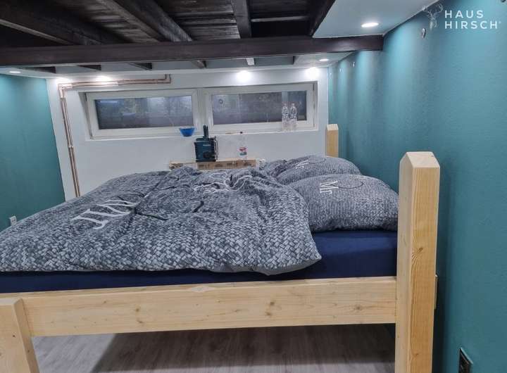 Das Elternschlafzimmer, ein Waschraum inklusive Trockenraum sowie ein zusätzlicher Abstell- und Vorratsraum sind im Souterrain untergebracht, was für zusätzlichen Komfort sorgt.
