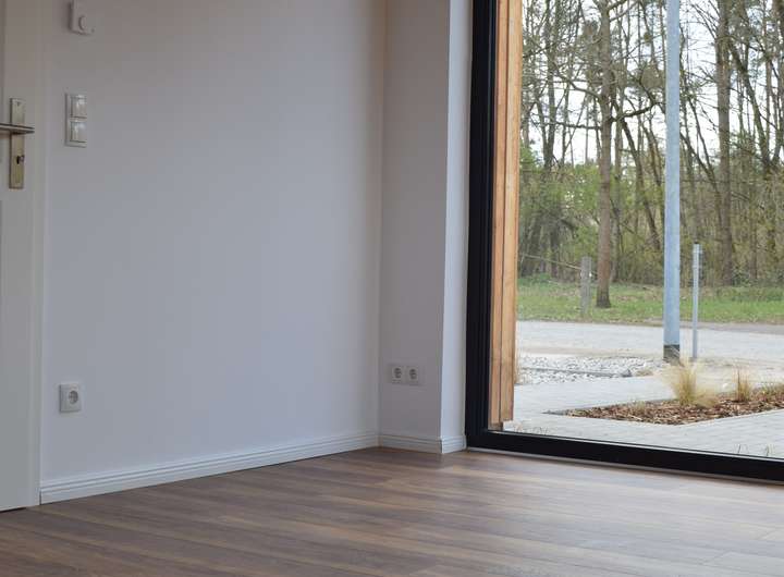 Der Eingangsbereich und die Bäder sind gefliest. Alle anderen Bereiche sind mit hochwertigem Laminat ausgelegt.