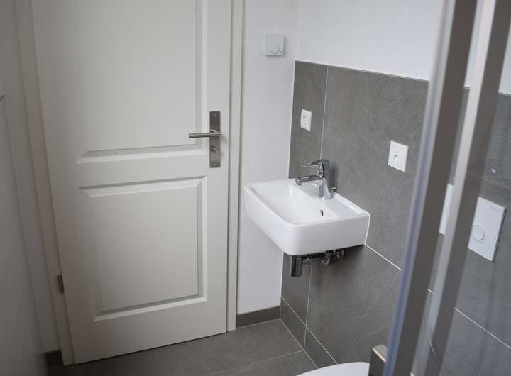 Die Warmwasserbereitung erfolgt über Elektro-Durchlauferhitzer.