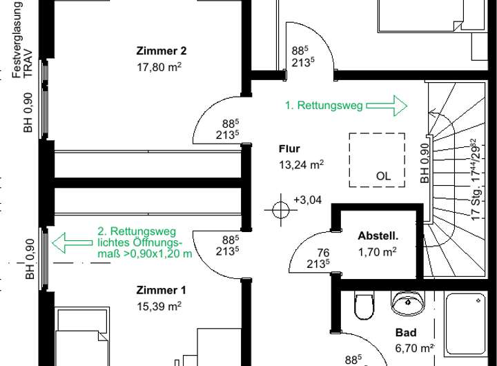 Drei geräumige Schlafzimmer sind im OG angeordnet, mit viel Platz und Stellmöglichkeiten.