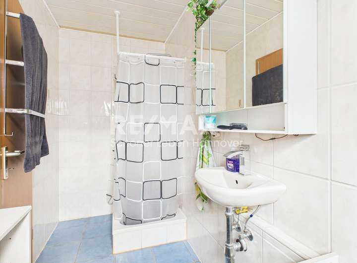 Das Haus bietet insgesamt 113 Quadratmeter Wohnfläche und verfügt im Erdgeschoss über ein großes Wohnzimmer, die Küche und ein Badezimmer mit Dusche.