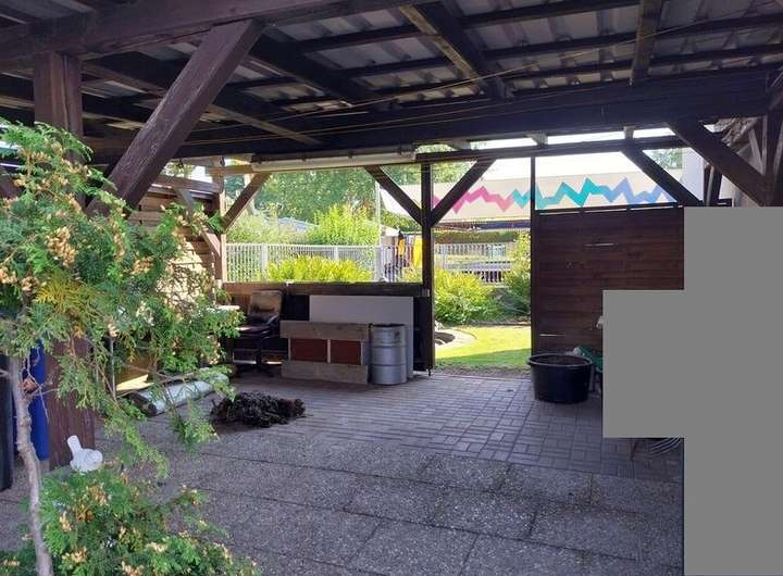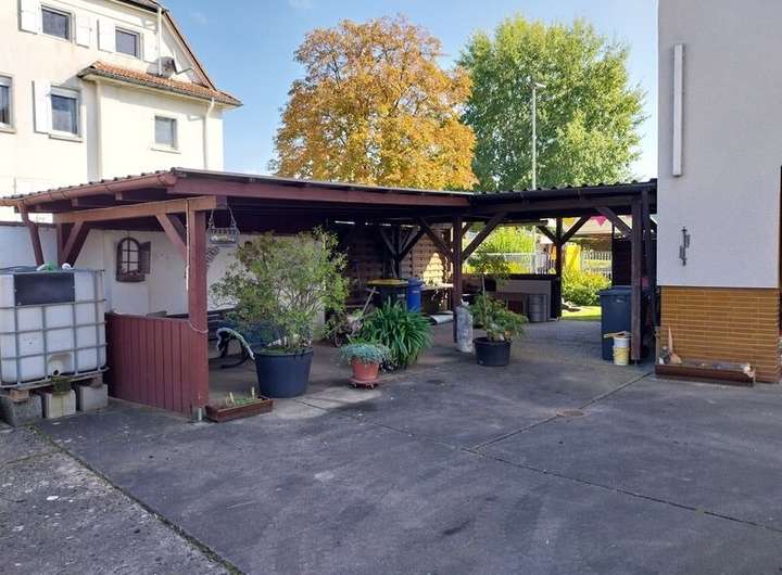 An die Halle angegliedert ist ein Doppelcarport und ein Lagerraum.