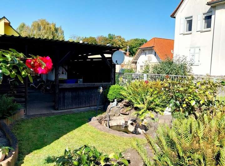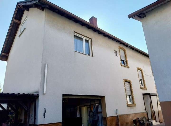 In dem Anbau befindet sich eine große Doppelgarage mit weiterer Lagermöglichkeit im oberen Bereich.