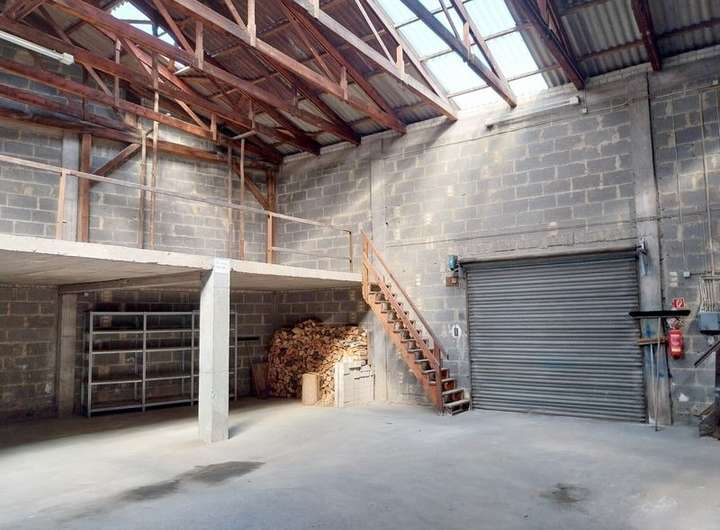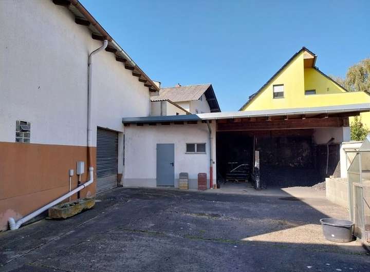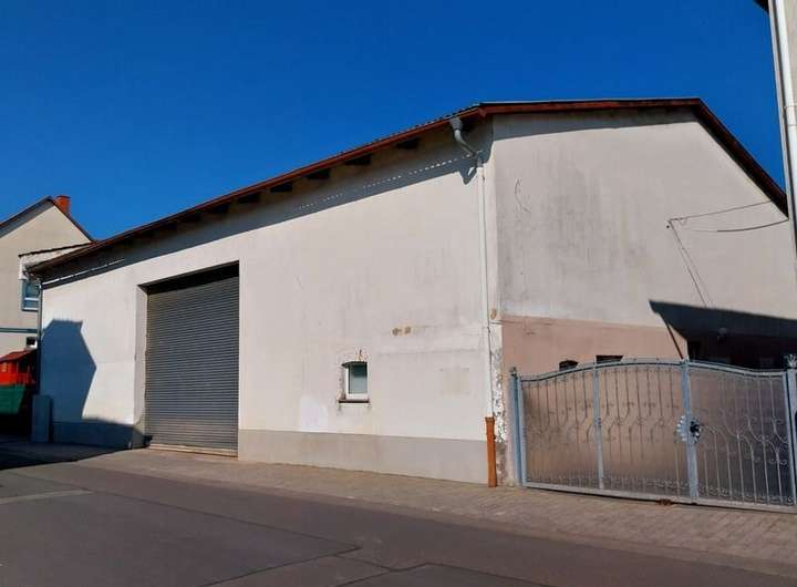 Die Halle wurde 1970 errichtet und verfügt über einen großen Raum mit 2 Rolltoren auf ca. 190m² Fläche und im oberen Bereich weitere Abstellmöglichkeiten, einen großen Büroraum mit Teeküche, einer Werkstatt und 3 WCs.