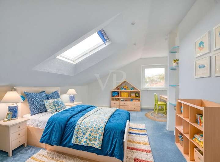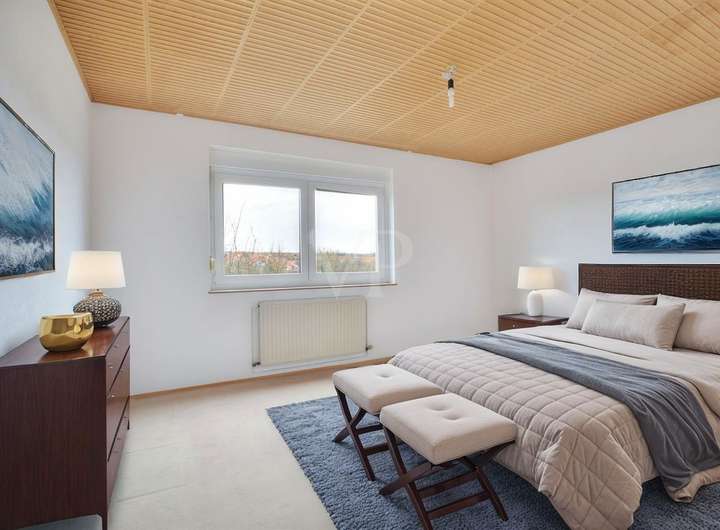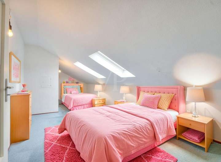 Insgesamt stehen Ihnen acht Zimmer zur Verfügung, darunter sechs Schlafzimmer, die flexibel als Schlaf-, Arbeits- oder Gästezimmer genutzt werden können. Die Raumaufteilung eignet sich gleichermaßen für größere Familien wie für das gemeinsame Wohnen mehrerer Generationen. Das Erdgeschoss empfängt Sie mit einem einladenden Flur, von dem aus alle Räumlichkeiten bequem zugänglich sind. Die Tageslichtküche, ausgelegt Richtung Garten, bietet ausreichend Platz zum gemeinsamen Kochen. Das angrenzende Wohnzimmer öffnet sich auf die Terrasse, welche viel Helligkeit durch die Ausrichtung in den Süden verspricht. Im Erdgeschoss befinden sich zudem zwei Schlafzimmer sowie ein tageslichtdurchflutetes Badezimmer. Im Obergeschoss erwartet Sie eine vergleichbare Raumstruktur mit Wohnzimmer, Schlafzimmern, Küche und Badezimmer. Auch hier bietet ein Balkon angenehme Aufenthaltsmöglichkeiten im Freien. Beide Etagen verfügen über großzügige Fensterflächen, die für viel Tageslicht sorgen.