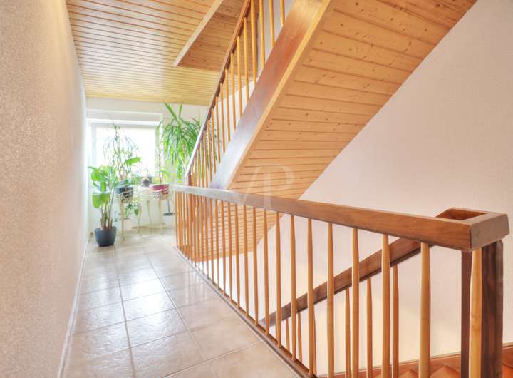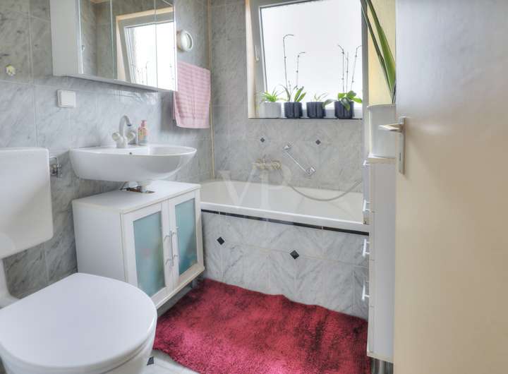Sämtliche Fenster wurden im Jahr 2000 und 2001 durch hochwertige Kunststofffenster ersetzt. Die Zentralheizung wurde ebenfalls 2001 installiert und sorgt zusammen mit den erneuerten Wasserleitungen im Kellerbereich (2010) für einen guten technischen Standard. Ein Highlight ist der attraktive Garten mit Ausblick, der viel Raum für Freizeit, Spiel und Erholung bietet. Im Vorgarten finden Sie viel Grün und Gestaltungsspielraum, so auch für einen weiteren Stellplatz ihres Autos. Die Garage ist mit einem elektrischen Sektionaltor (2017) ausgestattet und bietet direkten Zugang zum Garten. Zu den weiteren Ausstattungsmerkmalen gehören ein großzügiger Kellerbereich, der vielfältige Lager- und Abstellmöglichkeiten eröffnet, sowie insgesamt zwei Tageslichtbäder und ein zusätzliches WC im Dachgeschoss. Die aktuelle Innenanstrich-Sanierung (2022) verleiht dem Haus ein frisches und gepflegtes Erscheinungsbild.