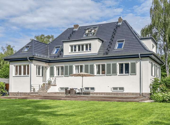 In einer exklusiven Lage des beliebten Berliner Ortsteils Heiligensee präsentiert sich dieses außergewöhnliche Einfamilienhaus als wahres Schmuckstück mit direktem Blick auf den angrenzenden Nieder Neuendorfer See. Die 1937 erbaute und 2024 vollständig kernsanierte ehemalige Direktorenvilla vereint modernste Ausstattung mit südländischem Ambiente und einem Hauch von Bauhaus. Es besticht durch seine einzigartige Architektur auf einem rund 1.790 m² großen, parkähnlichen Grundstück.