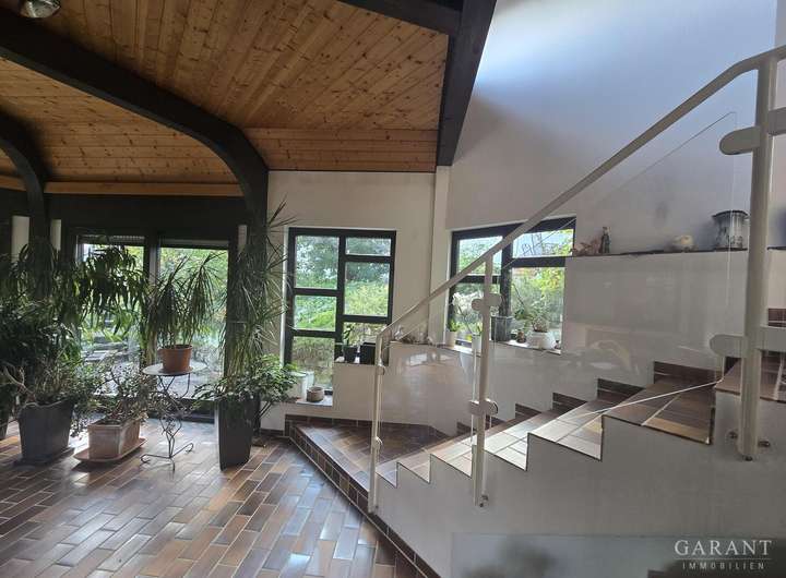 Direkt neben dem Eingangsbereich liegt die moderne Küche, wo Sie Ihre Einkäufe gleich versorgen können, gegenüber führt eine Treppe ins Untergeschoss. In der großzügigen Diele können Sie entspannt Ihre Kleidung aufhängen. An kalten Tagen empfängt Sie eine wohlige Wärme, welche vom Kaminofen strahlt und zum Verweilen einlädt. Das Wohnzimmer mit großen Fensterflächen ist zentraler Mittelpunkt des Hauses. Von hier aus kommt man in die Schlafräume und ins Bad oder in den Essbereich und dem traumhaften Anbau, der Ihnen das Gefühl gibt, eins zu sein mit der Natur.