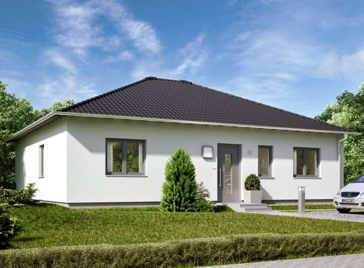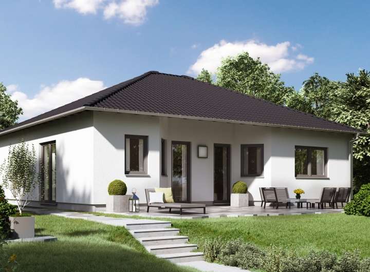 Barrierefrei präsentiert sich dieser 100 qm große Bungalow und beeindruckt durch eine optimale Raumaufteilung. Dabei garantieren bodentiefe Fenster helle und freundliche Räume. Die attraktive Wohnküche ist offen gestaltet und hat direkten Anschluss an den großzügig geschnittenen Wohn- und Essbereich. Dies macht die Wege sehr kurz und angenehm. Die überdachte Terrasse ist über einen bequemen Zugang erreichbar und bietet den idealen Ort um den Garten zu genießen. Da weder Treppen noch Stufen den Bewegungsfluss stören, fühlt man sich im ganzen Haus besonders wohl und sicher.