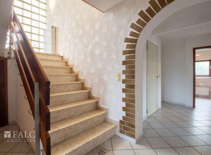 Sie betreten das Haus und werden im gemeinsamen Treppenhaus empfangen. Von hier aus gelangen Sie zur ca. 133 m² großen Erdgeschosswohnung.