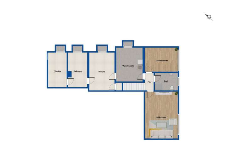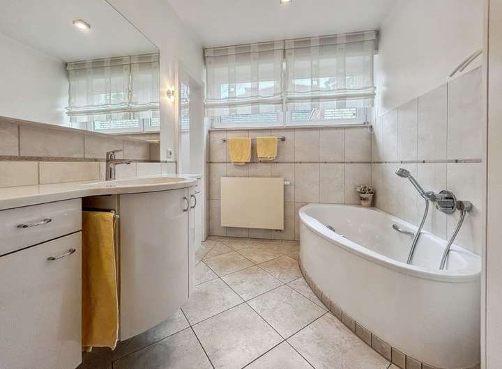 Die voll unterkellerte Immobilie bietet darüber hinaus vielseitige Nutzfläche, die teilweise bereits wohnraumähnlich genutzt wird. Im Keller befinden sich ein Hobbyraum, ein Gästezimmer, ein drittes Badezimmer, eine Waschküche, zwei Abstellräume, ein zusätzlicher Abstellraum unter der Treppe sowie ein separater Heizungsraum.