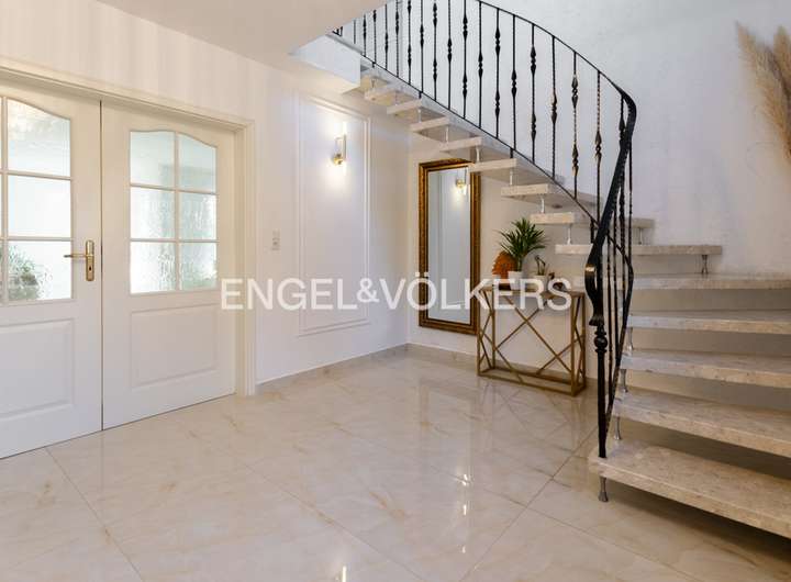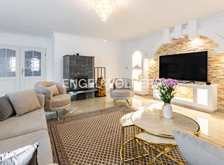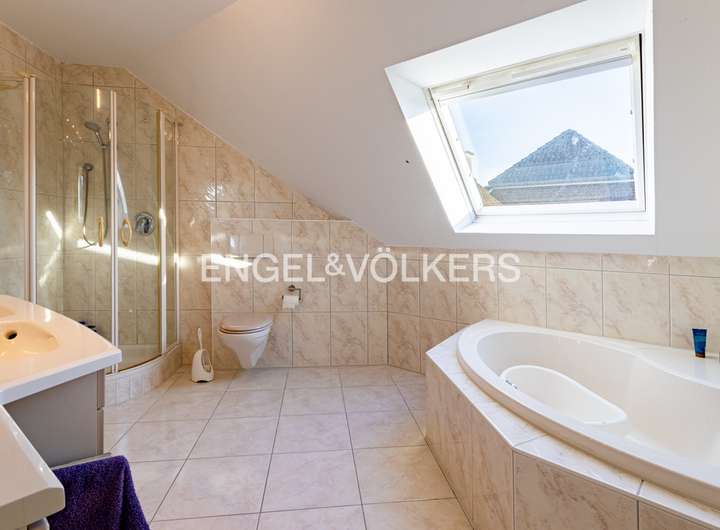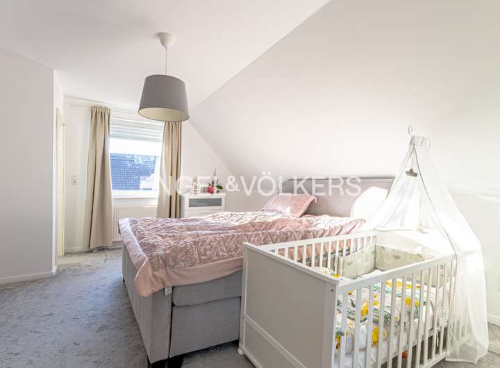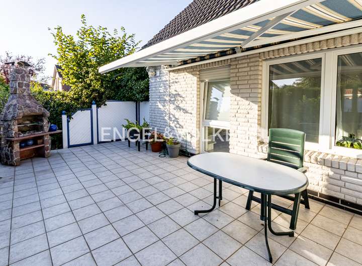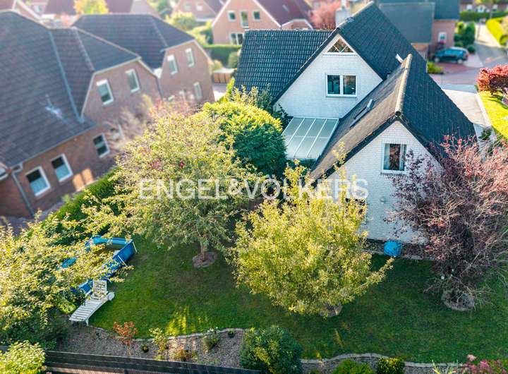 Dieses stilvoll gestaltete Einfamilienhaus, aus dem Jahr 1997, vereint klassische Architektur mit moderner Wohnkultur und bietet auf ca. 190 m² Wohnfläche und einem ca. 720 m² großen, liebevoll angelegten Grundstück ein Zuhause mit besonderem Anspruch an Komfort und Ästhetik. Der Empfangsbereich beeindruckt mit großzügiger Offenheit und hochwertigen, hellen Bodenfliesen, die sich stilvoll durch den Flur sowie den Wohn- und Essbereich ziehen. Eine elegant geschwungene Natursteintreppe verbindet die beiden Wohnebenen und unterstreicht den repräsentativen Charakter des Hauses. Im Zentrum des Hauses befindet sich der lichtdurchflutete Wohnbereich mit einem Kaminofen, der nicht nur für wohlige Wärme sorgt, sondern auch zur gemütlichen Atmosphäre beiträgt. Von hier aus öffnet sich die südwestlich ausgerichtete Terrasse mit gemauertem Grillkamin – ideal gelegen für gesellige Grillabende. Die geschützte Lage des Grundstücks sorgt zudem für eine uneinsehbare Privatsphäre und Rückzugsmöglichkeit im eigenen Garten. Eine zweite, überdachte Terrasse mit festem Dach ist vom Hauswirtschaftsraum aus zugänglich. Durch ihre geschützte Lage und den natürlichen Baumbestand bietet sie auch bei typisch ostfriesischem Wetter einen angenehmen Rückzugsort im Freien. Ebenfalls vom Hauswirtschaftsraum aus gelangt man direkt in die Garage – ein zusätzlicher Komfort im Alltag und gerade bei norddeutschem Wetter ein geschätztes Detail. Die Küche ist funktional und durchdacht gestaltet und wird durch einen praktischen Abstellraum ergänzt. Ein weiteres Zimmer im Erdgeschoss eignet sich flexibel als Gäste-, Arbeits- oder Schlafzimmer. Die Fußbodenheizung im gesamten Erdgeschoss sorgt für ein gleichmäßiges, angenehmes Raumklima. Im Obergeschoss erwarten Sie zwei großzügig geschnittene Schlafzimmer, von denen eines über ein angrenzendes Ankleidezimmer verfügt. Das helle Hauptbad überzeugt mit einer Eckbadewanne, separater Dusche, Doppelwaschtisch und Tageslicht. Ein zusätzlicher Raum dient derzeit als Büro und beherbergt zugleich die Heizungsanlage. Von hier aus gelangt man zum ausgebauten Dachboden der Garage, der beheizbar und mit Fenster ausgestattet ist – ideal nutzbar als Atelier oder Hobbyraum. Die gepflasterte Einfahrt bietet ausreichend Stellfläche für mehrere Fahrzeuge. Das gesamte Anwesen befindet sich in einem gepflegten Zustand und überzeugt durch die gelungene Kombination aus architektonischer Qualität, stilvoller Ausstattung und durchdachter Funktionalität – ein Haus, das Rückzugsort und Lebensmittelpunkt in einem ist.