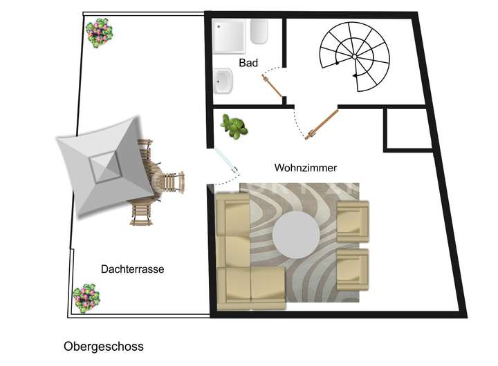 Ein besonderes Highlight ist die vom Wohnbereich zugängliche Terrasse, die zum Entspannen und Verweilen einlädt.