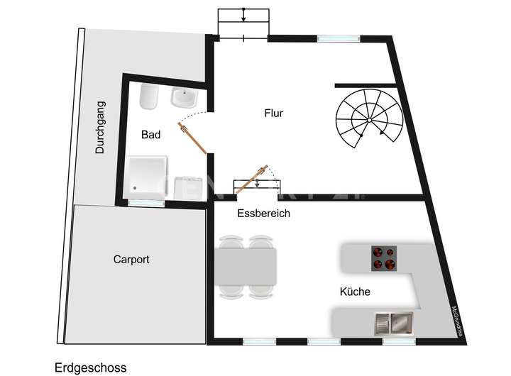 Unter der einladenden Terrasse befindet sich ein praktischer Carport, der geschützte Parkmöglichkeiten bietet.