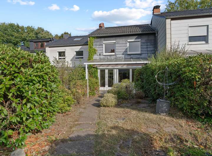 Das im Jahr 1964 errichtete Reihenmittelhaus präsentiert sich auf einer Wohnfläche von rund 100 m², verteilt auf Erd- und Obergeschoss, und bietet eine solide Basis für eine umfassende Modernisierung nach individuellen Vorstellungen. Das Haus befindet sich in einem renovierungsbedürftigen Zustand, überzeugt jedoch durch eine durchdachte Raumaufteilung und vielfältige Nutzungsmöglichkeiten. Im Erdgeschoss empfängt ein kleiner Windfang den Besucher und führt in den zentralen Flur, von dem aus sämtliche Räume dieser Etage erreichbar sind. Hier befindet sich auch die Treppe, die in das Obergeschoss führt. Ein praktischer Abstellraum bietet Platz für Haushaltsutensilien oder Vorräte, während ein separates Gäste-WC zusätzlichen Komfort schafft. Der großzügig geschnittene Wohn- und Essbereich bildet das Herzstück des Hauses. Durch seine offene Gestaltung zur Küche entsteht ein kommunikatives Raumkonzept, das viel Platz für gemeinsames Wohnen und Leben bietet. Vom Wohnbereich aus gelangt man auf die Terrasse, die zu gemütlichen Stunden im Freien einlädt. Der Garten ist aktuell pflegeleicht gestaltet, mit einem grünen Daumen lässt sich hier aber problemlos eine kleine Oase gestalten. Direkt an die Terrasse schließt sich ein kleiner, an das Haus angrenzender Schuppen an, der zusätzlichen Stauraum für Gartengeräte oder Fahrräder bietet. Das Obergeschoss beherbergt einen zentralen Flur, von dem aus alle weiteren Räume erschlossen werden. Ein kleiner Abstellraum sorgt auch hier für praktische Aufbewahrungsmöglichkeiten. Das innenliegende Duschbad ist funktional gestaltet und bietet Potenzial für eine moderne Neugestaltung. Drei unterschiedlich große Zimmer stehen als Schlaf-, Kinder- oder Arbeitsräume zur Verfügung und lassen sich flexibel nach den Bedürfnissen der Bewohner gestalten. Ein Highlight ist sicherlich der Dachboden, der mit einer eingebauten Sauna einen besonderen Zusatzkomfort bietet und Raum für Erholung und Entspannung schafft. Insgesamt bietet das Haus dank seiner soliden Bausubstanz und der klassischen Grundrissgestaltung vielfältige Möglichkeiten für eine individuelle Modernisierung. Nach entsprechender Renovierung lässt sich hier ein behagliches Zuhause für Paare oder Familien realisieren. Überzeugen Sie sich selbst und vereinbaren Sie noch heute einen Besichtigungstermin!