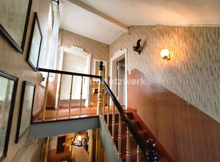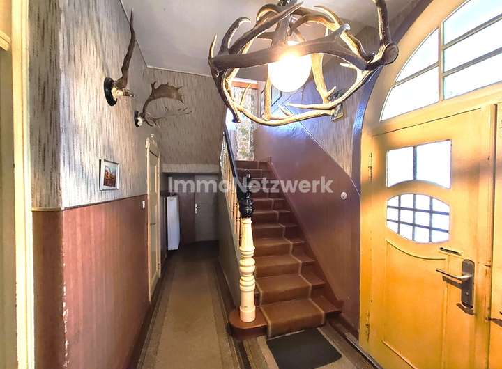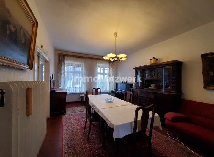 Das charmante Hauptgebäude mit seinen Verbindungsbau zum Stallgebäude, erbaut im Jahr 1912, bietet insgesamt ca. 460 m² Wohn- und Nutzfläche und wartet mit einer charaktervollen Architektur auf ein neuen Eigentümer. Im Erdgeschoss lädt eine großzügige Raumaufteilung ein: Vier gut proportionierte Zimmer, eine große Küche sowie ein charmantes Duschbad eröffnen Raum für individuelle Wohnträume. Über den Flurbereich und ein repräsentativer Windfang gelangen Sie direkt zum Innenhof, der Natur und Wohnen verbindet. Hier lässt es sich gut verweilen beim gemütlichen Grillen oder ausklingenden Sommerabenden mit Freunden und/oder der Familie.