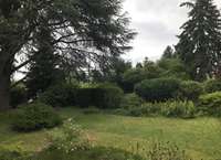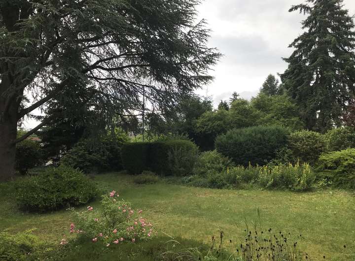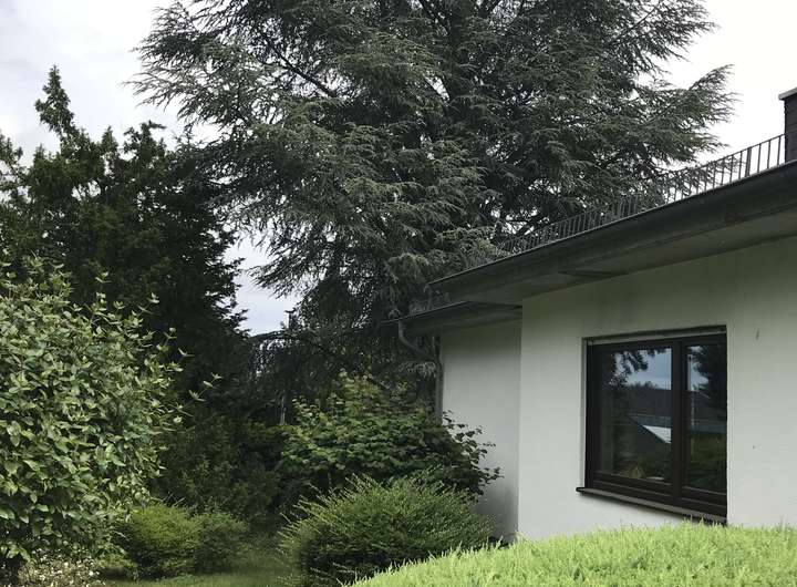 Der Garten hat eine ansprechende Größe und ist schön eingewachsen. Die umgebende Bebauung besteht aus eingeschossigen Einfamilienhäusern auf parkähnlichen Grundstücken.