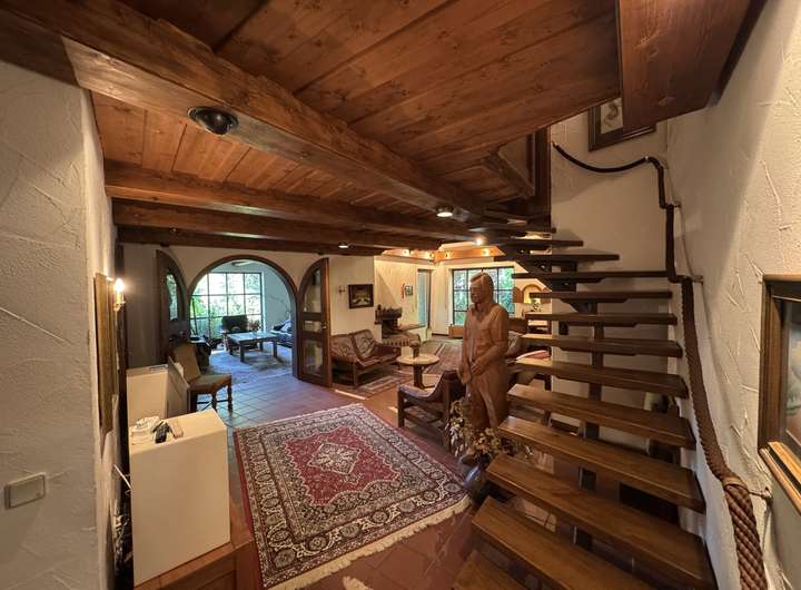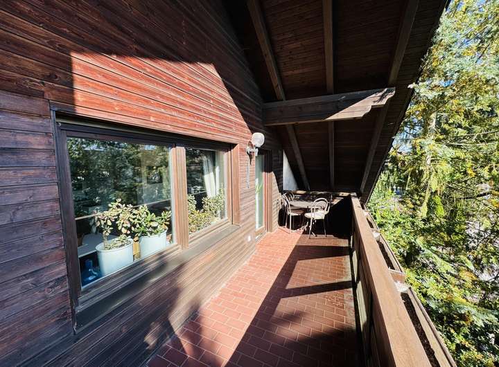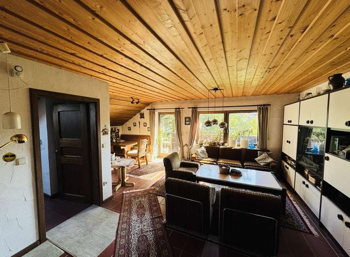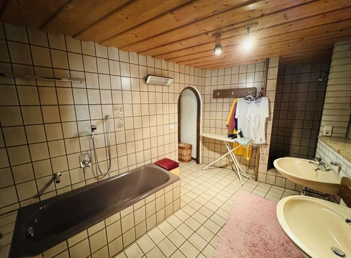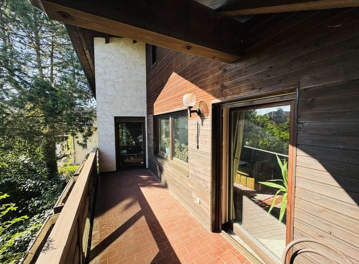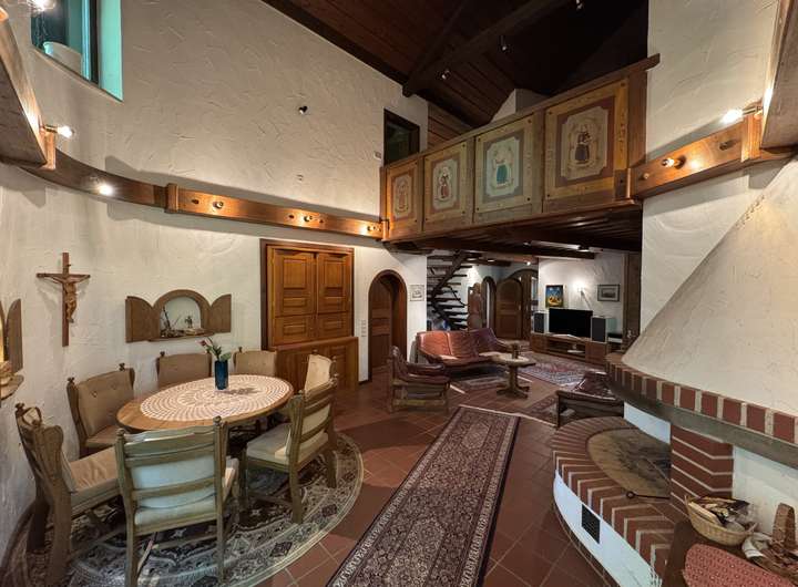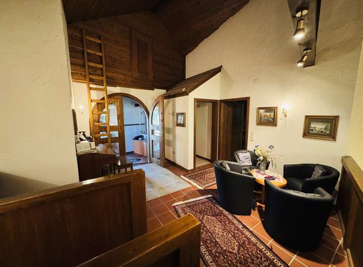 Besonders schön ist, dass jedes Zimmer über einen Balkon oder eine Terrasse verfügt, was für viel Licht und frische Luft sorgt. Die urigen Kachelöfen versorgen das ganze Haus mit behaglicher Wärme. Der offene Kamin im Wohn-/Esszimmer bieten zudem Blick ins offene Feuer - hier können Sie es sich in der Lounge gemütlich machen. Außerdem ist das Haus zusätzlich vom Keller bis zum Dachgeschoss mit einer Fußbodenheizung ausgestattet.