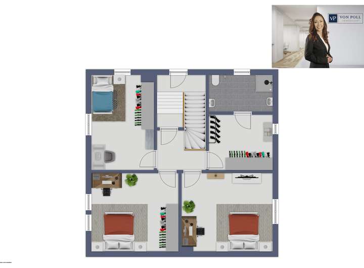 Über die Treppe gelangen Sie ins Obergeschoss, den privaten Rückzugsort: Hier finden Sie drei vollwertige Schlafzimmer sowie ein weiteres Tageslicht-Duschbad, das ebenfalls über ein Durchgangszimmer erreichbar ist. Ein besonderes Highlight ist der Balkon, dessen Zugang Sie auf dem Weg von EG zu OG erreichen – Ihr sonniger Logenplatz.