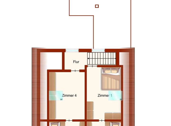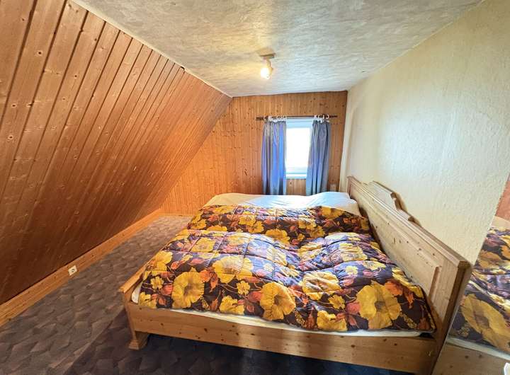 Das Obergeschoss bedarf einer Renovierung im Bereich der Fenster und das Dach müsste gedämmt werden.