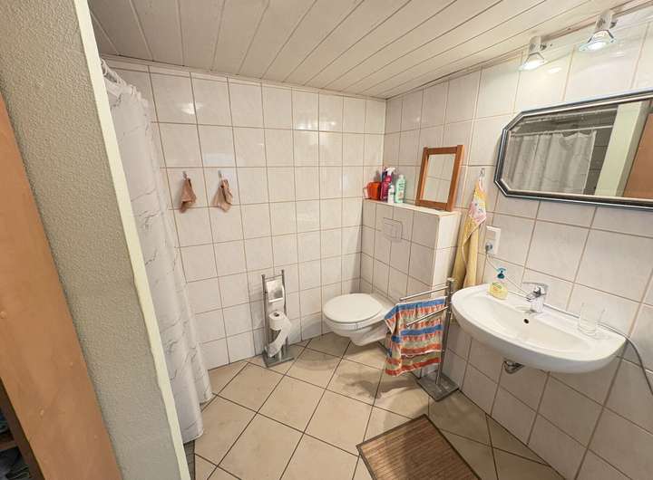 Im Obergeschoss sind insgesamt vier Zimmer. Die Fenster im Erdgeschoss sind im Jahr 2017 ausgetauscht worden. Das gesamt Haus wird mit einem Pelletofen beheizt und die Warmwasserversorgung erfolgt über einen Durchlauferhitzer.
