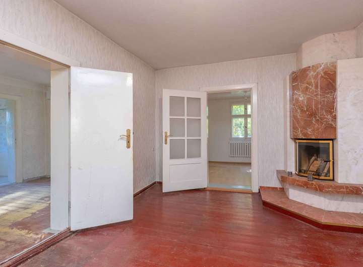 Die originale Ausstattung mit Holzdielenböden, Kassettentüren und Doppelkastenfenstern unterstreicht den historischen Charakter, der sich harmonisch mit moderneren Elementen verbindet.