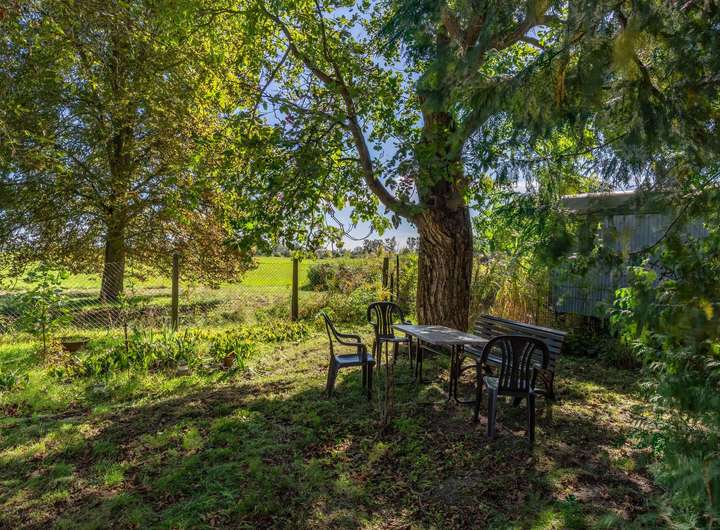 Der großzügige Garten bietet viel Raum für individuelle Gestaltung, ideal für Gartenliebhaber. Hinter den Nebengebäuden öffnet sich eine weitere Grünfläche, die sich perfekt für einen Selbstversorgergarten eignet. Am hinteren Ende des Grundstücks führt ein Gartentor direkt zum idyllischen, unbebauten Feld. Ideal für Spaziergänge, Gassirunden oder Joggingstrecken.