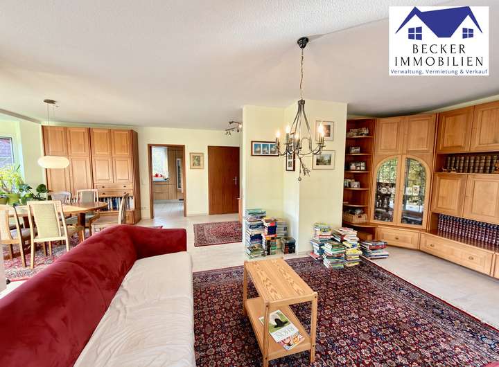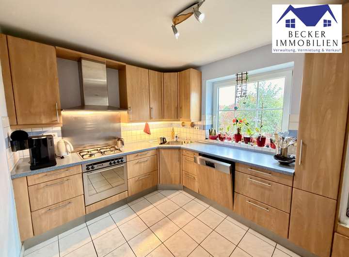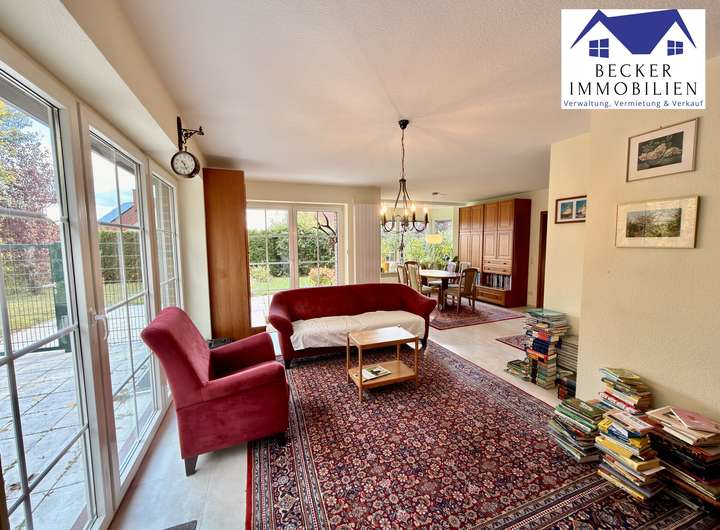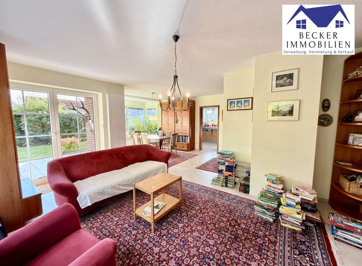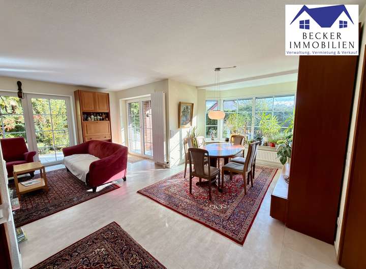 Das Herzstück des Hauses ist der großzügige, lichtdurchflutete Wohnbereich mit teils bodentiefen Fenstern, der nahtlos an die Küche angrenzt und perfekt für gemeinsame Stunden und gesellige Abende geeignet ist.