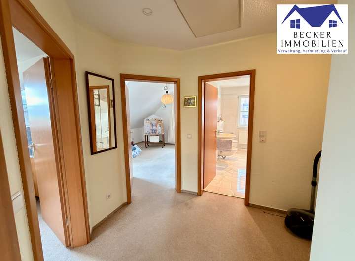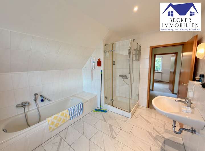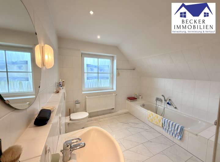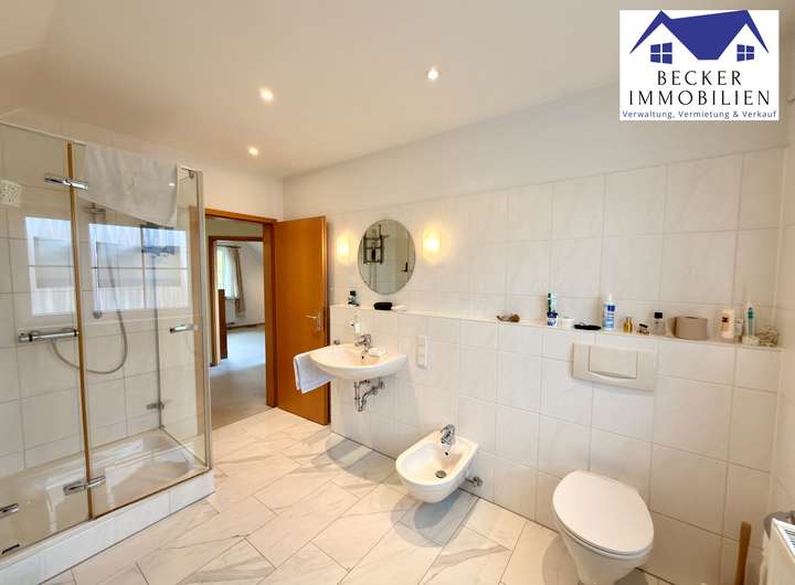 Auf zwei Etagen verteilen sich vier flexibel nutzbare Zimmer, ein komfortables Badezimmer mit Dusche, Badewanne und Bidet sowie ein separates Gäste-WC mit Dusche im Erdgeschoss.