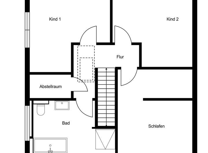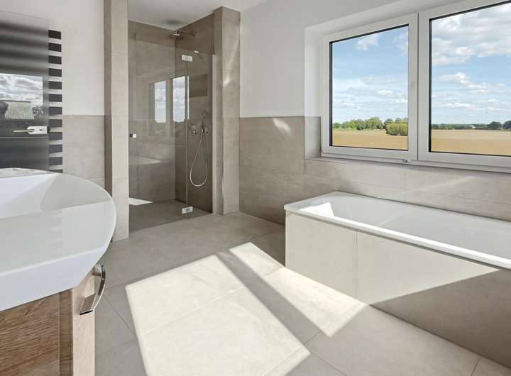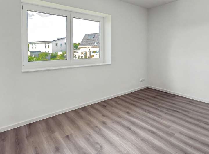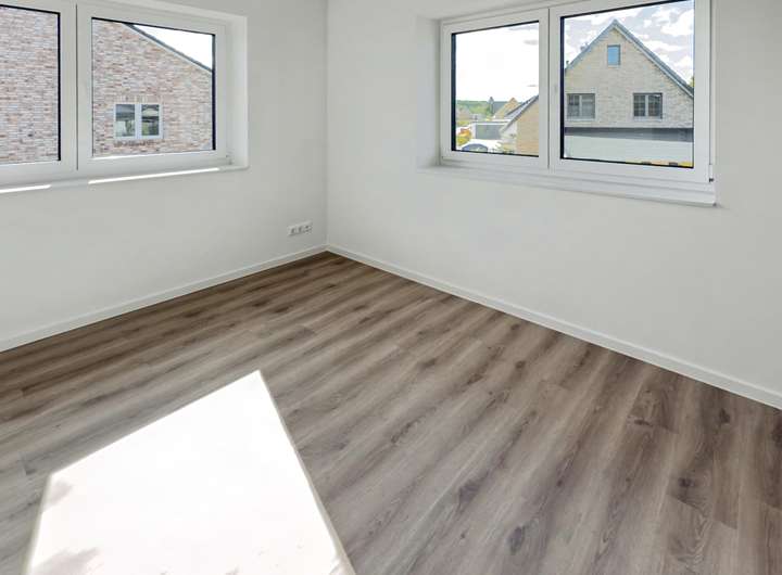 Im Obergeschoss setzt sich der hochwertige Stil fort. Das lichtdurchflutete Badezimmer überzeugt mit Badewanne, Dusche und Doppelwaschbecken – ein Ort zum Entspannen und Wohlfühlen. Neben dem großzügigen Schlafzimmer stehen zwei weitere Zimmer zur Verfügung, die flexibel als Kinderzimmer, Homeoffice oder Gästezimmer genutzt werden können.