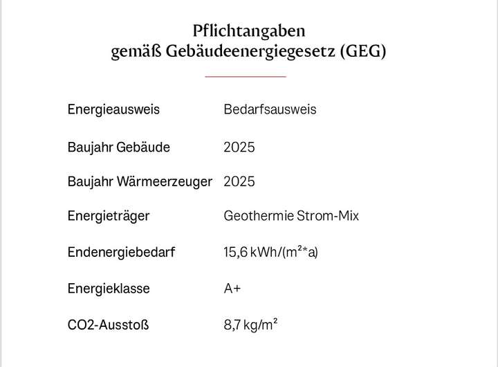 | Energieverbrauchskennwert | 15,6 kWh/(m²*a) |