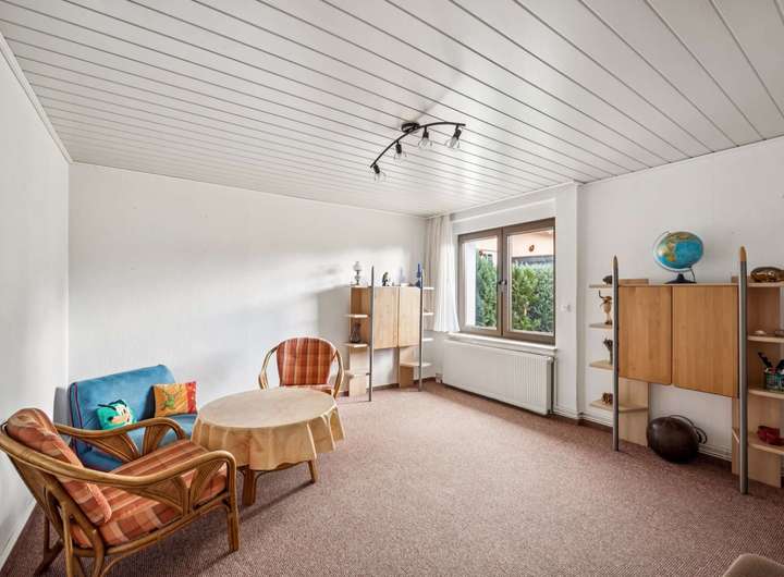 Es handelt sich um ein in den dreißiger Jahren erbauten und Anfang der achtziger Jahre umgebauten Bungalow. 1990 wurde das Haus von den jetzigen Eigentümern saniert (Heizung, Türen, Wasserleitung, Abwasser, Elektrik zum großen Teil, Dach neu gedeckt, Anbau, Überdachung des Kellereingangs, des Hauses etc.). Zu der Immobilie gehören zusätzlich noch eine Waschküche, zwei Garagen und ein sehr hohes Carport.