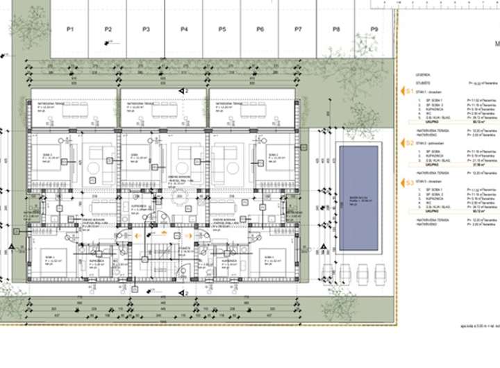 Projekt: 3 Wohngebäude (EG + 2) mit Pool