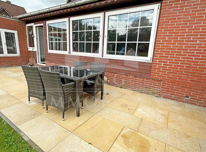 Das Haus wurde modernisiert und bietet ebenerdiges Wohnen mit Schlafzimmer, modernem Bad (Wanne & große Dusche) im Erdgeschoss, Bad mit WC und Waschtisch im Obergeschoss, offener Wohnküche, Wohnbereich mit Zugang zum Wintergarten (ca. 30 m²) und Garten.