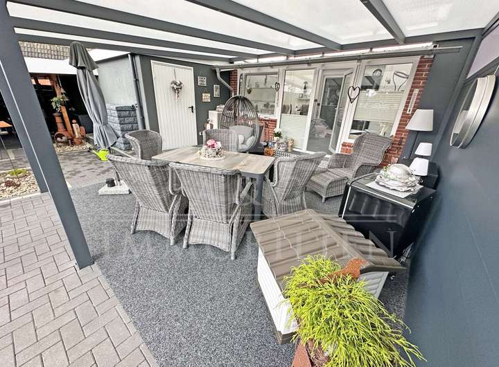 Diese liebevoll modernisierte und hochwertig kernsanierte Immobilie (Baujahr ca. 1964, modernisiert seit 2014) bietet auf ca. 130 m² Wohnfläche und einem 788 m² großen Grundstück modernen Wohnkomfort in nahezu neuwertigem Zustand. Highlights sind der stilvolle Wintergarten mit Blick ins Grüne, ein gepflegter Außenbereich mit Spa-Bereich und eine hochwertige Outdoorküche.