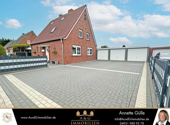 Die Immobilie profitiert von einer ausgezeichneten Verkehrsanbindung. Die nahegelegene Bundesstraße B210 ermöglicht eine schnelle Verbindung zu den umliegenden Städten wie Emden und Aurich. Auch die Autobahnanbindung ist gut erreichbar, was Pendlern den Weg in die größeren Städte erleichtert.