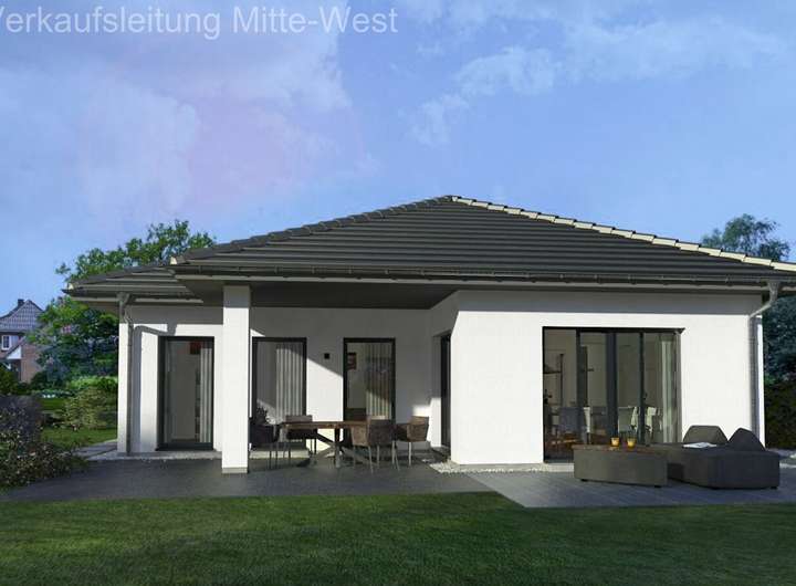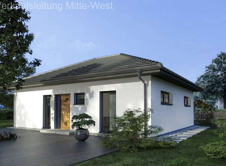 Wählen Sie auch bei diesem Bungalow zwischen Walm- und Flachdach.